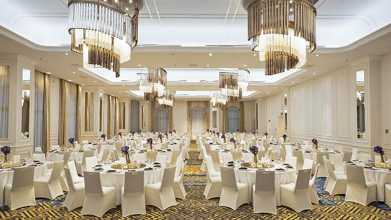 Không gian sảnh tiệc chính Grand Saigon rộng 500 mét vuông cùng khu vực sảnh chờ với những ô cửa sổ hình mái vòm sẽ là phông nền tự nhiên cho các sự kiện đẳng cấp tổ chức tại Mai House Saigon.
