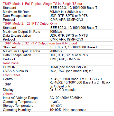 • Total bitrate up to 400Mb/s at 128 IPTV Mode