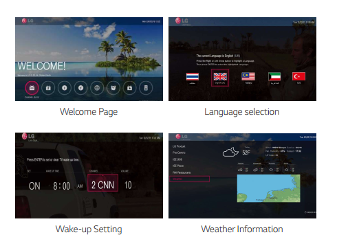 - Direct Solution: Direct is a hotel content management system that supports simple editing tools and provides various solutions such as 1-click service and IP network-based remote management. With this solution, users can easily edit the user interface, provide customized service, and efficiently manage all TVs. PCD version 3.0 offers IoT-based In-room control, as well as voice control through LG Embedded Natural Language Processing (NLP). These IoT and voicerelated features will prepare hotels for a future where rooms will be enhanced by artificial intelligence.