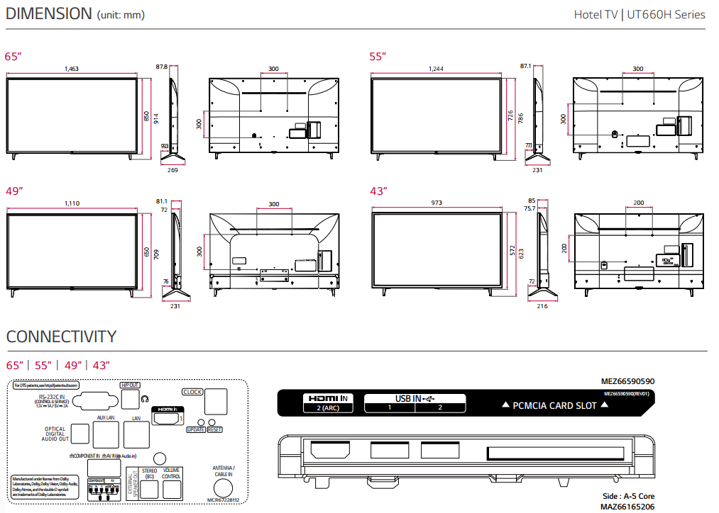 Hotel TV - UT660HThe UT660H series offers Ultra HD Displays, customizable apps, and Pro:Centric, hospitality content management software that enables you to easily create customized content. UT660HLGSố lượng: 1 Cái