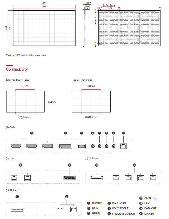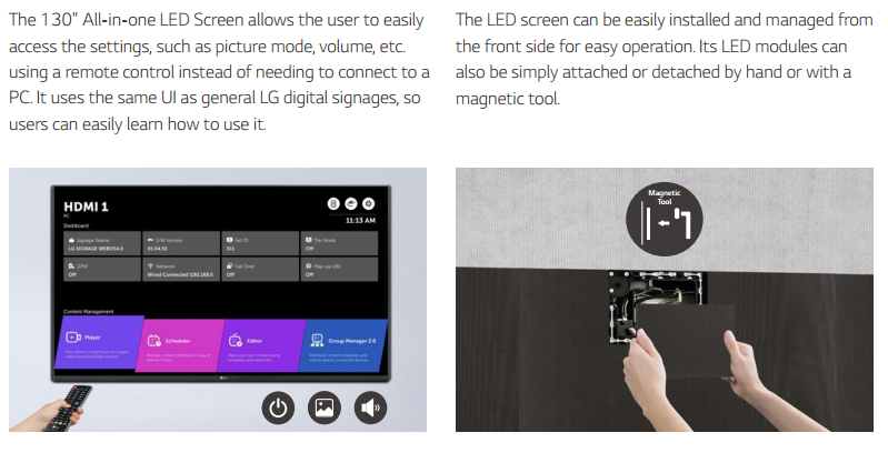 The LG 130" All-in-one LED Screen features a 130-inch large screen with no bezel.