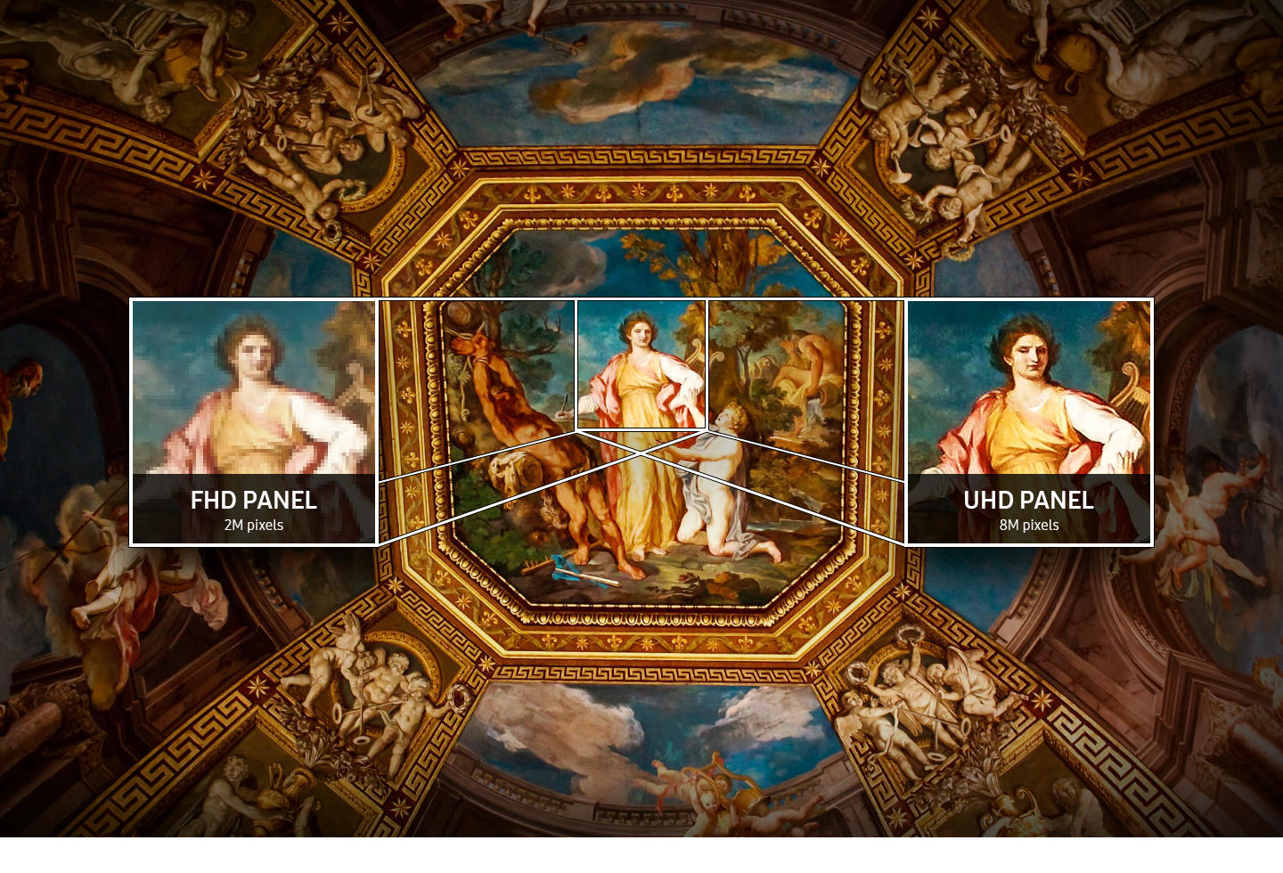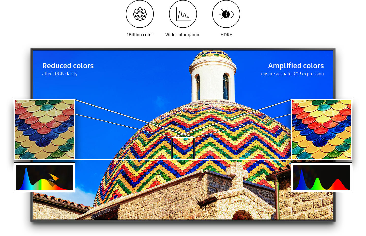 Màn hình hiển thị nội dung Ultra HD, màu sắc nổi bật với Dynamic Crystal Color. Màn hình QMR có khả năng cung cấp chất lượng hinhg ảnh UHD ngay cả khi nội dung có độ phân giải thấp.