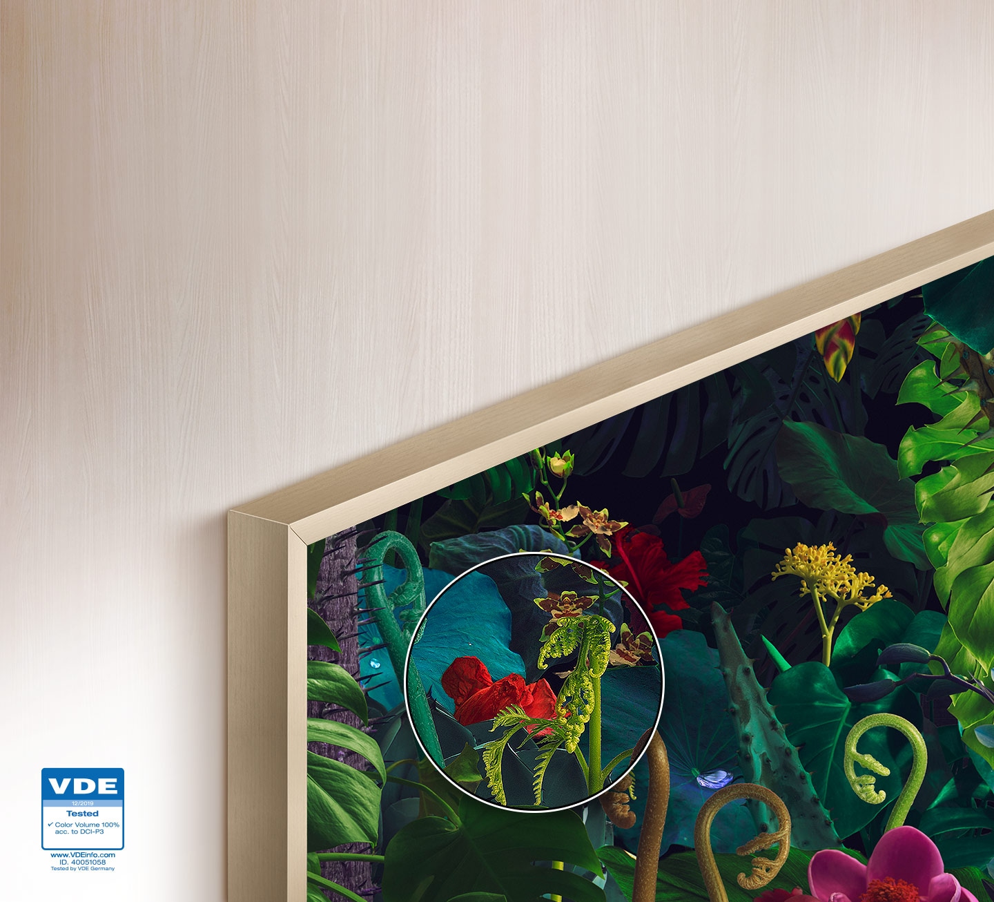 *QLED đã nhận được chứng nhận từ hiệp hội thử nghiệm và chứng nhận đẳng cấp thế giới, Verband Deutscher Elektrotechniker (VDE), về khả năng tạo ra 100% dải sắc màu. *100% dải sắc màu được đo theo tiêu chuẩn DCI-P3, được chứng nhận bởi VDE.