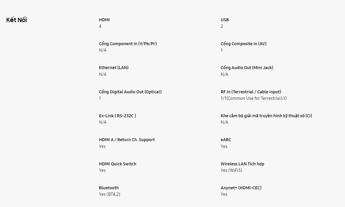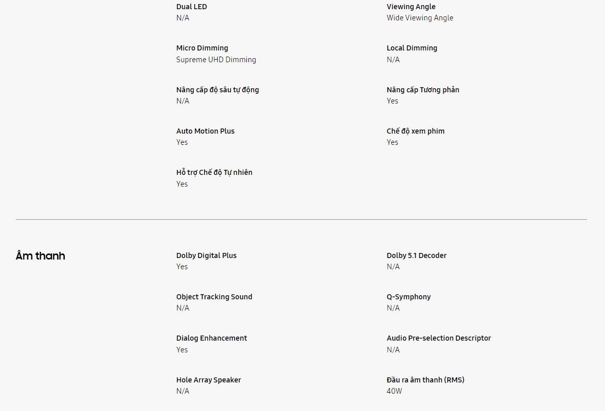 *Những dịch vụ thông minh và giao diện người dùng (GUI) có thể thay đổi theo kiểu máy, khu vực, ngôn ngữ và thiết bị di động. *Cần tài khoản Samsung để thiết lập TV. *Trải nghiệm người dùng thực tế có thể thay đổi. *Một số tính năng và chức năng được cung cấp bởi các thiết bị kết nối có thể không được hỗ trợ hoặc bị giới hạn sử dụng. *Hỗ trợ tính năng bật TV có thể thay đổi tùy theo kiểu máy.