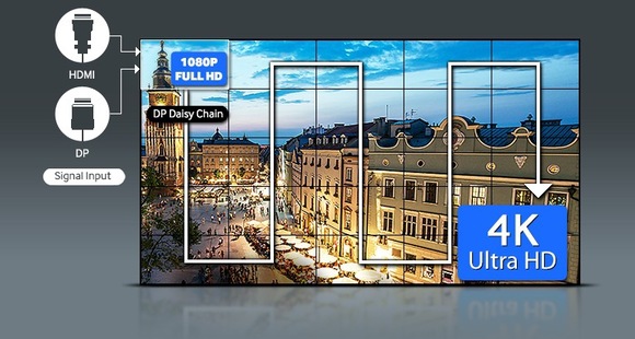 - Điều chỉnh cấu hình 5x5 sử dụng DisplayPort 1.2 và cổng HDMI, màn hình UDE-B của Samsung nâng chất lượng hình ảnh hiển thị đạt chuẩn UHD với độ nét cực cao, liền mạch trên toàn bộ các màn hình.
