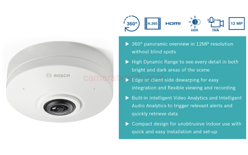 Thuộc dòng FLEXIDOME panoramic 5100i, sở hữu độ phân giải 12MP và góc nhìn toàn cảnh 360°, giúp loại bỏ điểm mù và mang lại khả năng giám sát toàn diện. Thiết kế hiện đại kết hợp công nghệ tiên tiến, phù hợp cho môi trường bán lẻ và các ứng dụng yêu cầu quan sát rộng, chi tiết và chính xác. Đây là giải pháp lý tưởng cho hệ thống an ninh thông minh và thẩm mỹ.