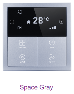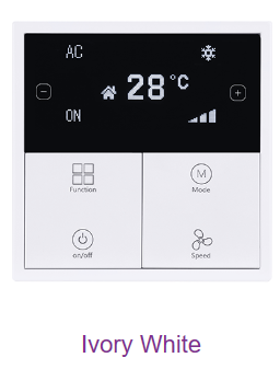 1. Nút "-": Chọn mục tiêu trước đó, giảm nhiệt độ, đặt thời gian chờ và chọn ID thiết bị.2. Nút "+": Chọn mục tiêu tiếp theo, tăng nhiệt độ, đặt thời gian chờ và chọn ID thiết bị3. Màn hình OLED: Hiển thị thông tin như biểu tượng và trạng thái4. Nút xác nhận và chuyển trang: Được sử dụng để xác nhận thông tin và chuyển trang giữa các điều hòa, sưởi ấm sàn và thông gió.5. Nút quay lại và các chế độ chuyển đổi: Được sử dụng để trở về trang trước và các chế độ chuyển đổi của điều hòa không khí và sưởi ấm sàn.6. Nút bật / tắt: Bật / tắt điều hòa, hệ thống sưởi sàn và hệ thống thông gió.7. Nút tốc độ quạt: Được sử dụng để chuyển đổi tốc độ quạt của hệ thống điều hòa không khí và thông gió.