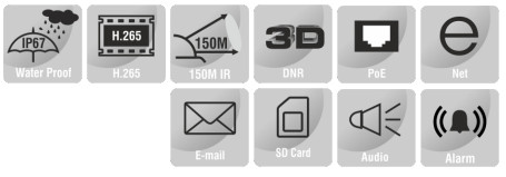 FEATURES 33X Optical Zoom 16X Digital Zoom Smart IR up to 150m(upgradable to 200m) ONVIF Profile (S, G, T) Triple Stream Audio and Alarm Support PoE+, IP67