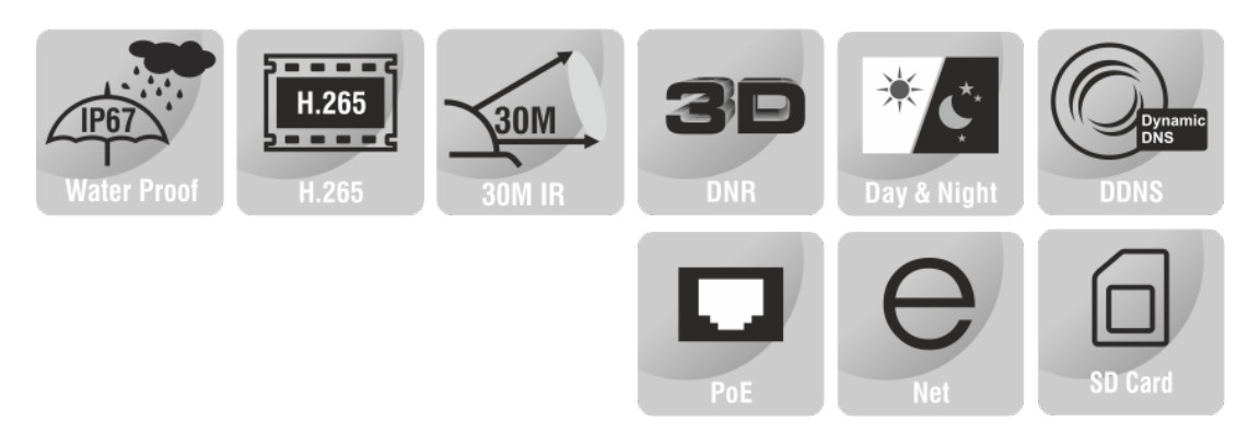 5MP IR IP H.265 Compact Dome camera with 2.8 Fixed Lens, PoE, WDR, SD card slot, Built-in Mic and 30m IR support