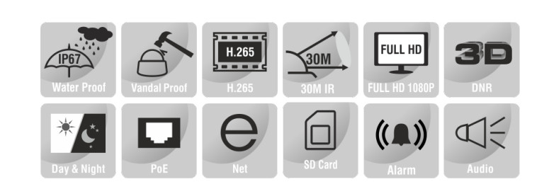 Đây là một camera Dome cố định 2MP, được trang bị công nghệ Starlight IR IP H.265. Camera này có ống kính cố định 2.8mm, hỗ trợ công nghệ PoE, WDR, khe cắm thẻ nhớ SD, Mic tích hợp và hỗ trợ tầm nhìn hồng ngoại 30m.