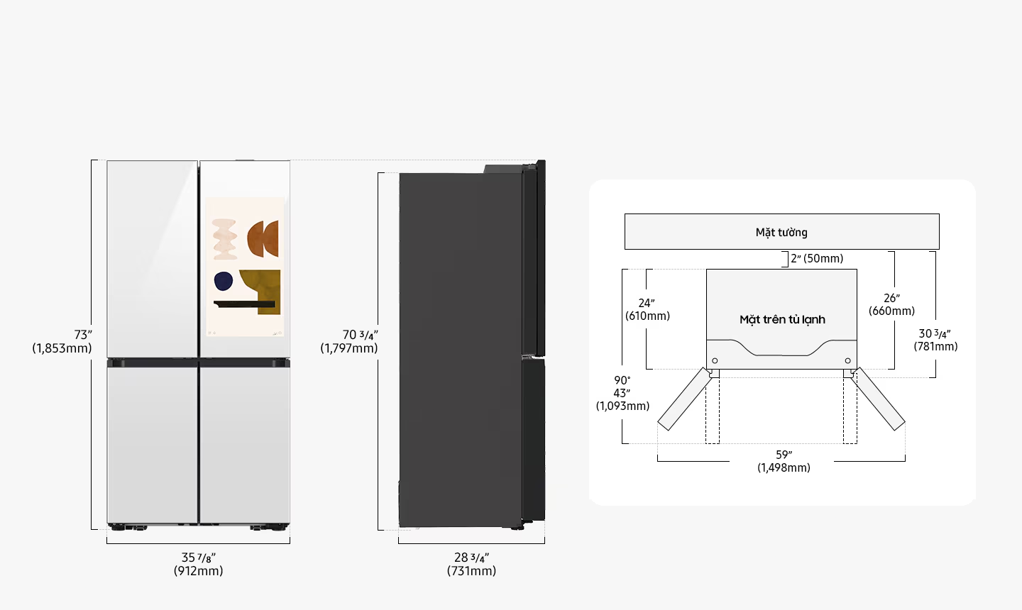 | Chiều sâu với tay cầm cửa (mm) | 731 mm | |