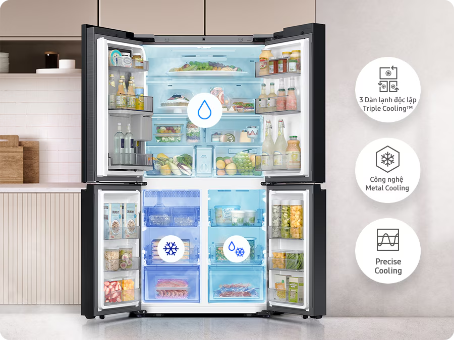 | Làm lạnh | Công nghệ làm lạnh | 3 dàn lạnh độc lập Triple Cooling |