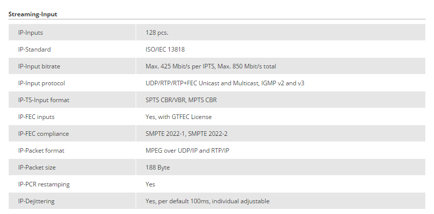 GT 23 W hỗ trợ nhiều đầu vào IP với SPTS VBR / CBR và MPTS CBR, ghép kênh và giải mã kênh