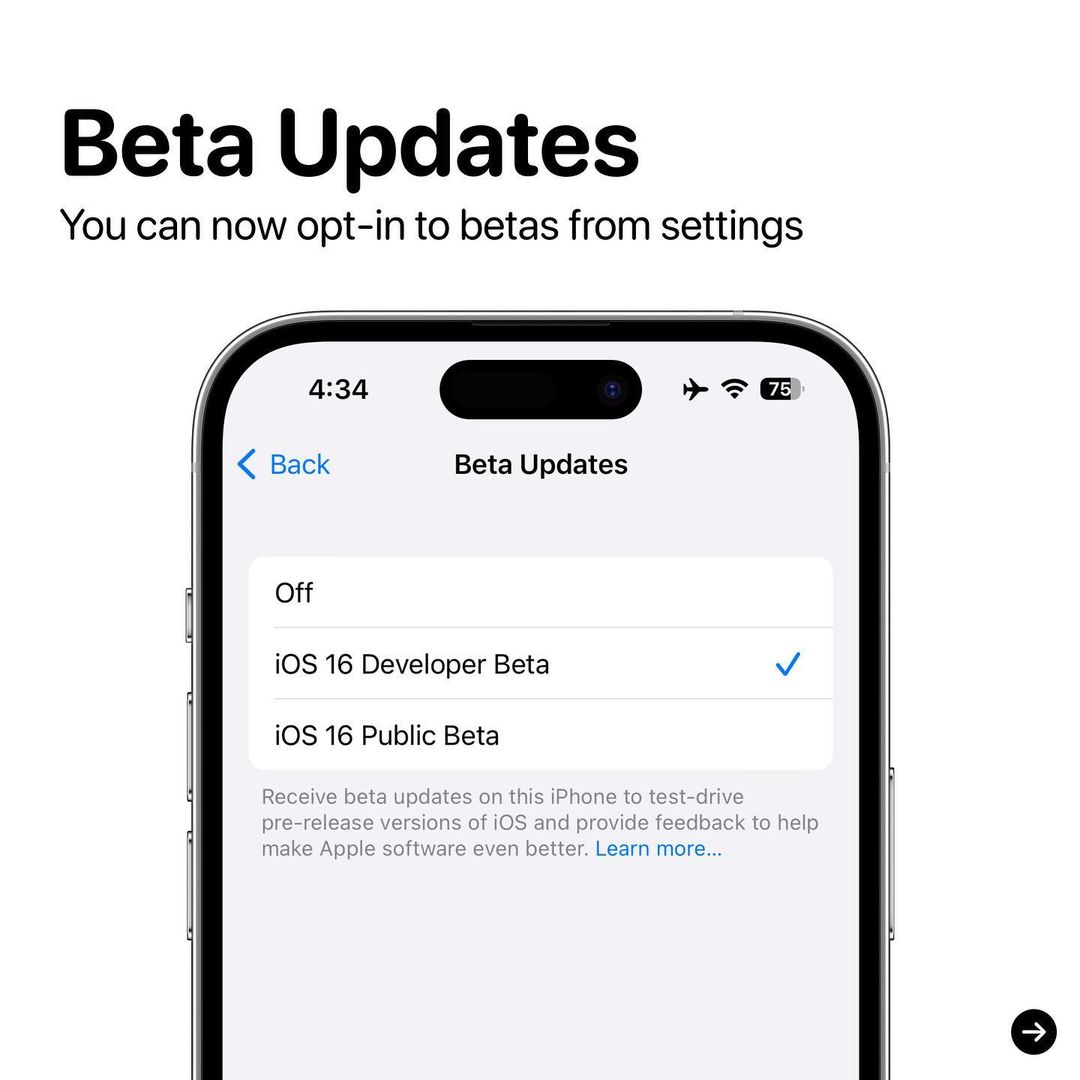 Apple thay đổi cách thức hoạt động của chương trình phần mềm beta. Người dùng có thể cập nhật hệ điều hành bản beta ngay trong phần Cài đặt của iPhone, miễn là người dùng đó có Apple ID liên kết với tài khoản nhà phát triển hoặc tài khoản beta công khai