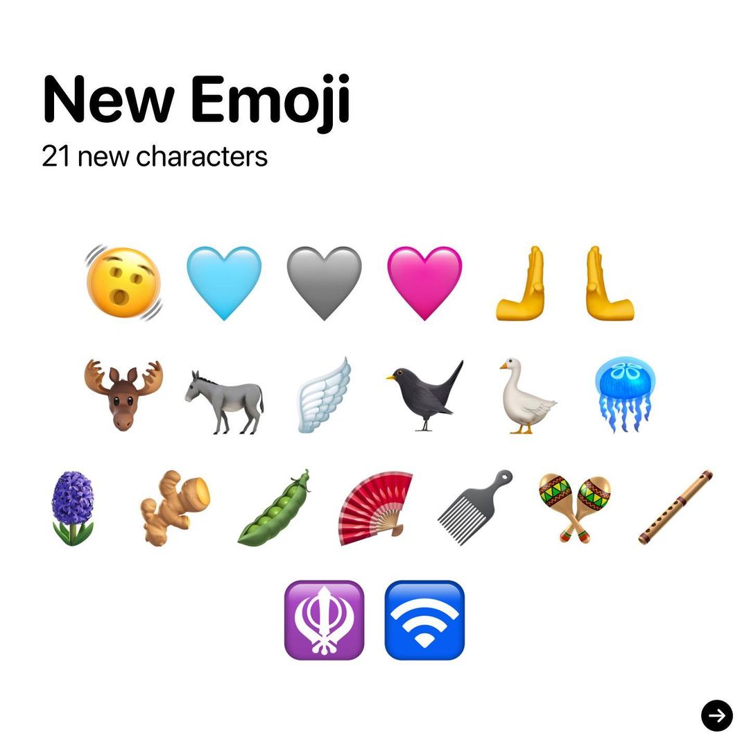 Ở bản cập nhật 16.4, iOS/iPadOS đã có bổ sung tổng cộng 21 biểu tượng cảm xúc mới bao gồm: Cái lắc đầu, trái tim màu hồng, trái tim màu xanh, trái tim màu xám, con lừa, con nai sừng tấm, chim đen, con ngỗng, cánh, con sứa, hoa lục bình,…