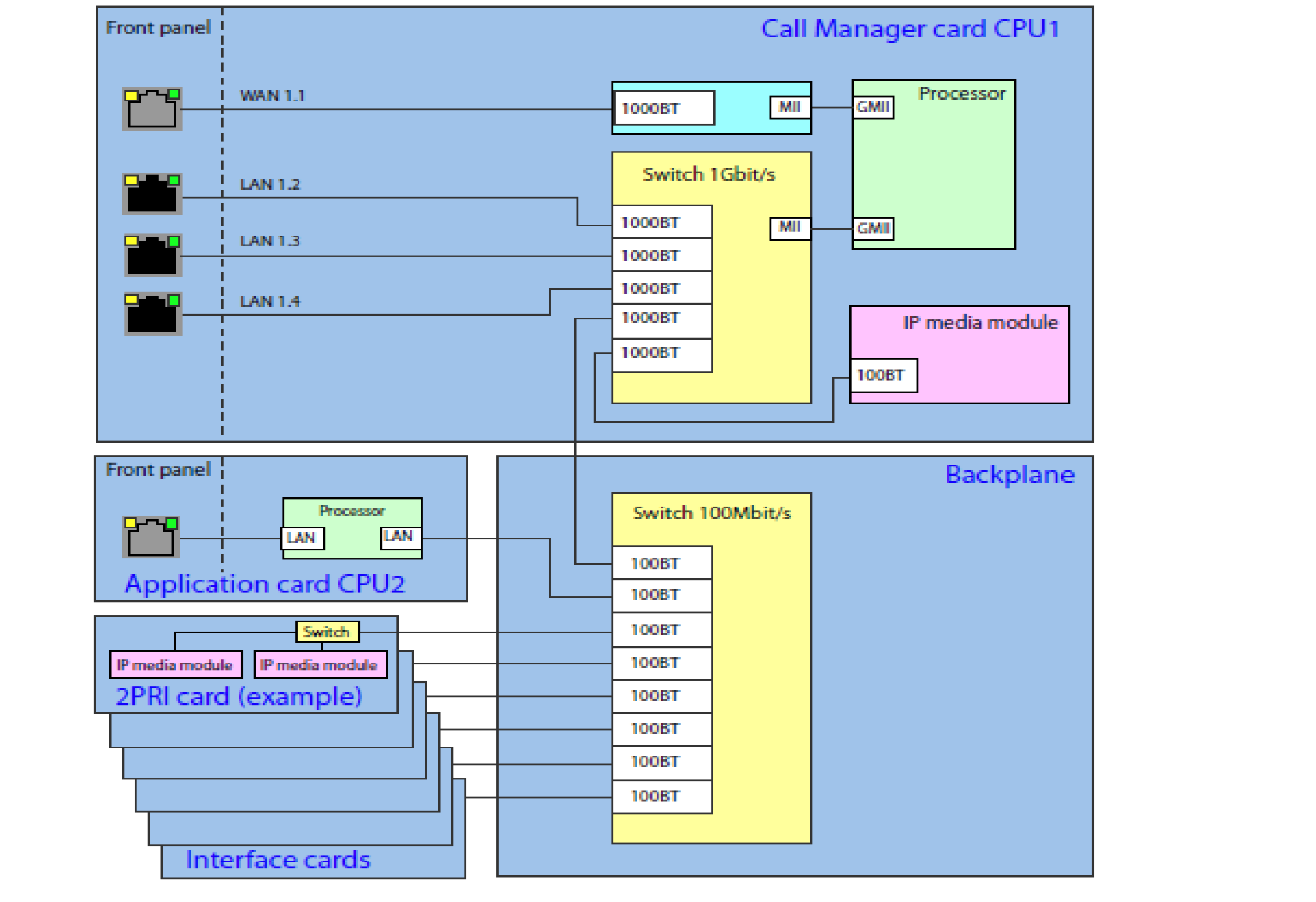 CPU1: bộ xử lý trung tâm dành cho tổng đài IP Aastra 470, card tích hợp màn hình hiển thị LCD để hiển thị thông số cấu hình, công tắc nguồn để tắt mở tổng đài, ngoài ra còn có các phím điều khiển bằng tay hỗ trợ cho việc xử lý trực tiếp trên tổng đài, bộ xử lý hỗ trợ 1 port WAN, 3 port LAN (1Gbit/s), 4 port FXS, bên trong CPU1 có các khe cắm dành cho việc gắn thẻ Flash, RAM, Modul DSP, và có cả khe tùy chọn để gắn IP media.