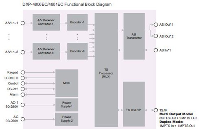 DXP-4800EC / 4801EC là bộ mã hóa mật độ cao thời gian thực H.264 HD / SD và MPEG-2 SD có thể hỗ trợ lên đến tám cổng vào HDMI độ nét cao (HD) nén và mã hóa cùng một lúc.