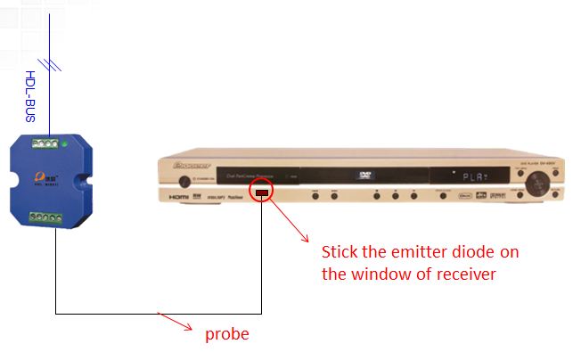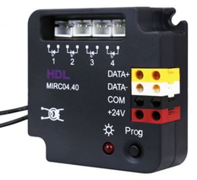Thiết bị phát hồng ngoại 4 kênh , thông qua đường truyền HDL Buspro, mã IR được lưu trong phần mềm lập trình HDL buspro hoặc học lệnh mã IR từ bộ học IR, sau đó điều khiển các thiết bị IR như AC, TV, Fan ...